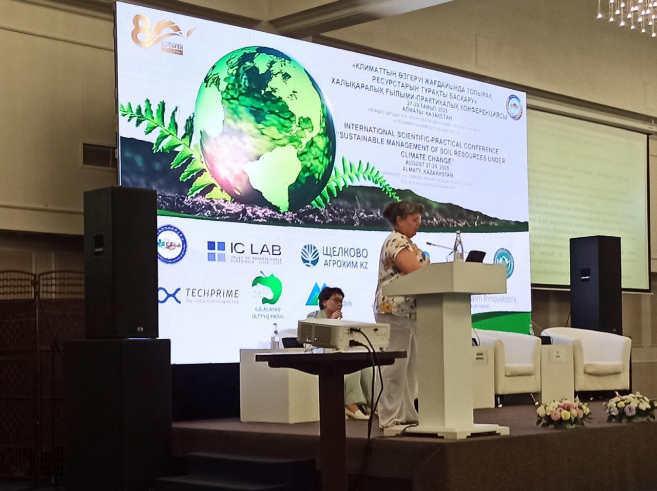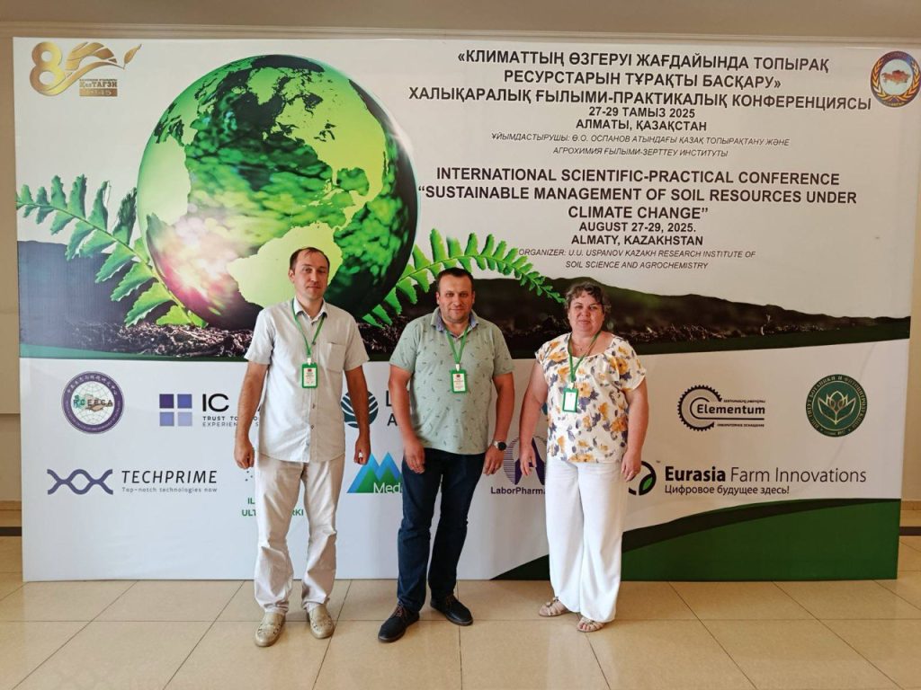 Сотрудники института посетили Казахский институт почвоведения и агрохимии, подписали договор о творческом сотрудничестве и приняли активное участие в конференции «Устойчивое управление почвенными ресурсами в условиях изменения климата. Устинова А.М. выступила с ключевым докладом, а Цырибко В.Б. кроме доклада был модератором тематической секции.