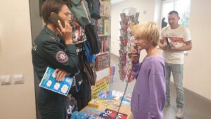 Так, в рамках акции работники сектора пропаганды Октябрьского РОЧС провели тематические мероприятия с посетителями торгового центра «Октябрьский». Зоны активности расположились возле книжного магазина «Тот самый», специализирующегося на реализации товаров для детей дошкольного и школьного возраста.