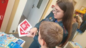 С детьми работники МЧС провели «Экзамен безопасности», который состоял из пяти тематических заданий. Вместе потренировались сообщать диспетчеру о пожаре по телефону «101», составили действия в случае возникновения пожара, сложили пазл и расшифровали правило безопасности, разобрали значения знаков эвакуации, а в завершении сделали фото в боевой одежде спасателей. После прохождения экзамена школьникам вручили сертификаты об его успешном прохождении.