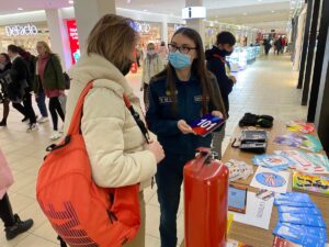 В рамках республиканской акции «День безопасности. Внимание всем!» работники Октябрьского РОЧС совместно с учащимися учреждения образования «Минский государственный механико-технологический профессионально-технический колледж» провели тематические мероприятия в торгово-развлекательном центре «Галилео».