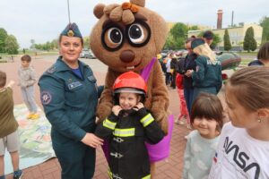 В преддверии лета спасатели Октябрьского и Заводского районов при участии ребят из военно-патриотического клуба «Зубр» организовали праздник для семей, проживающих в общежитии национального аэропорта «Минск», а также для жильцов близлежащих домов микрорайона.
